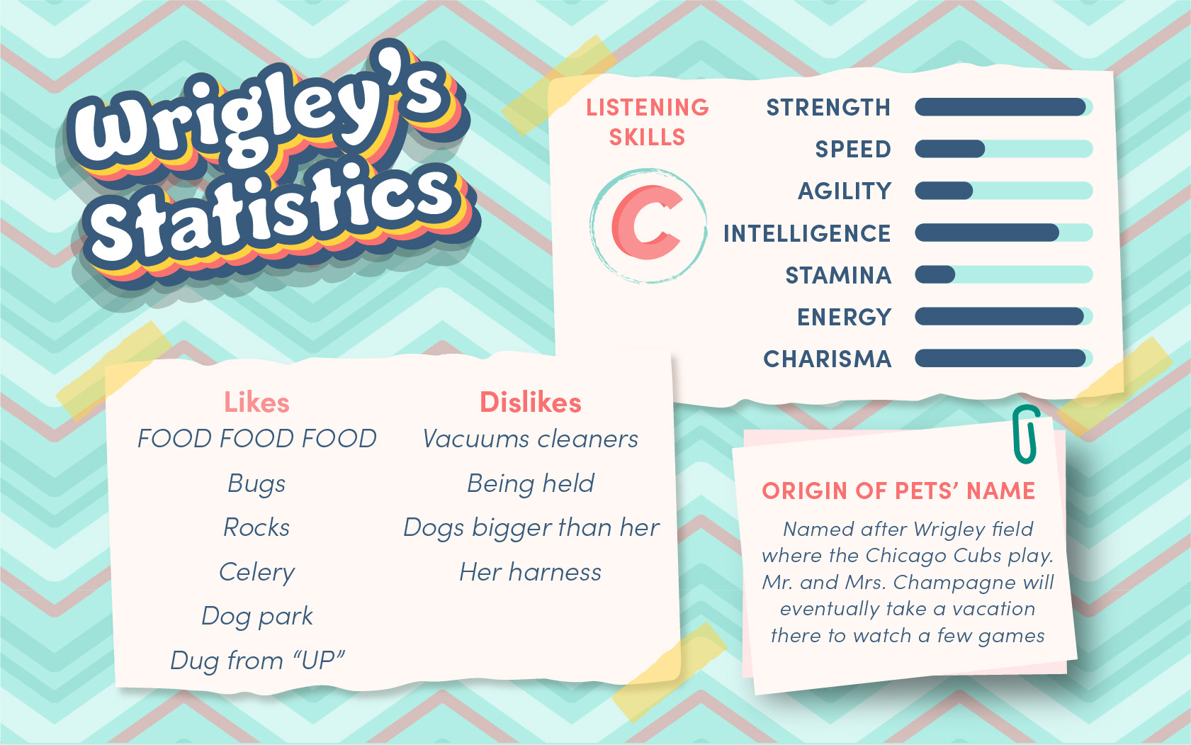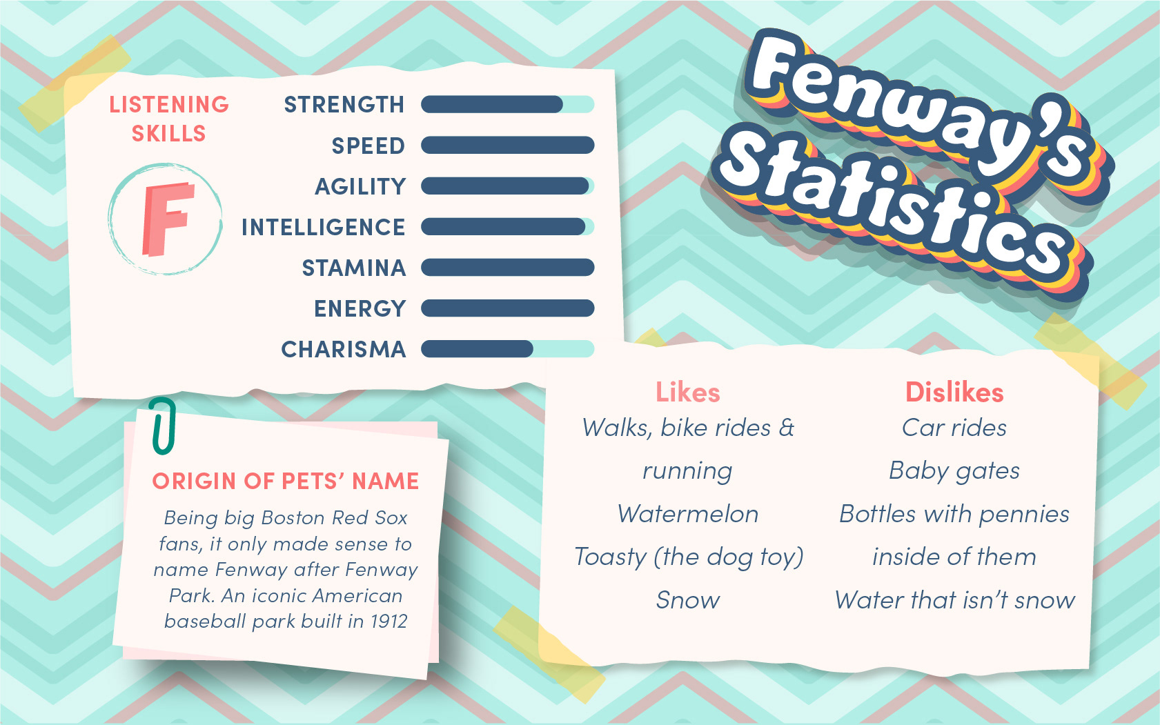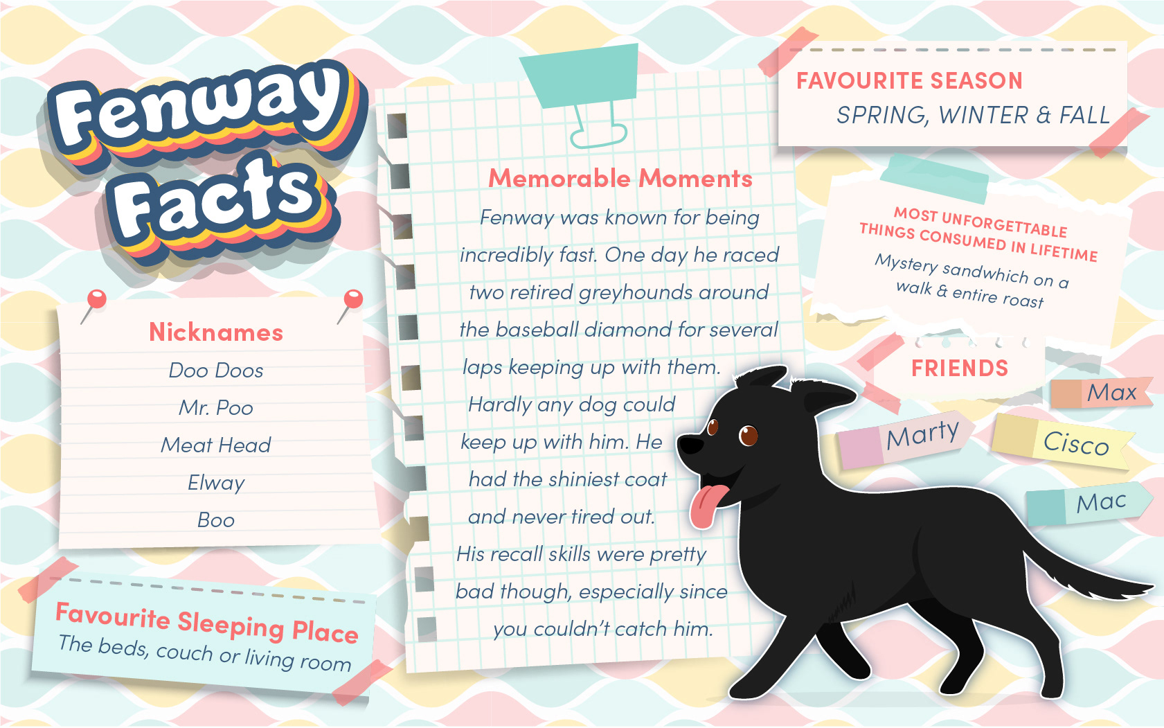 This is a fun project I did about the pets we have had in our lives. I am fortunate to have had the experience of being in Jasper, Fenway and Baker's lives. Wrigley currently lives with my parents.