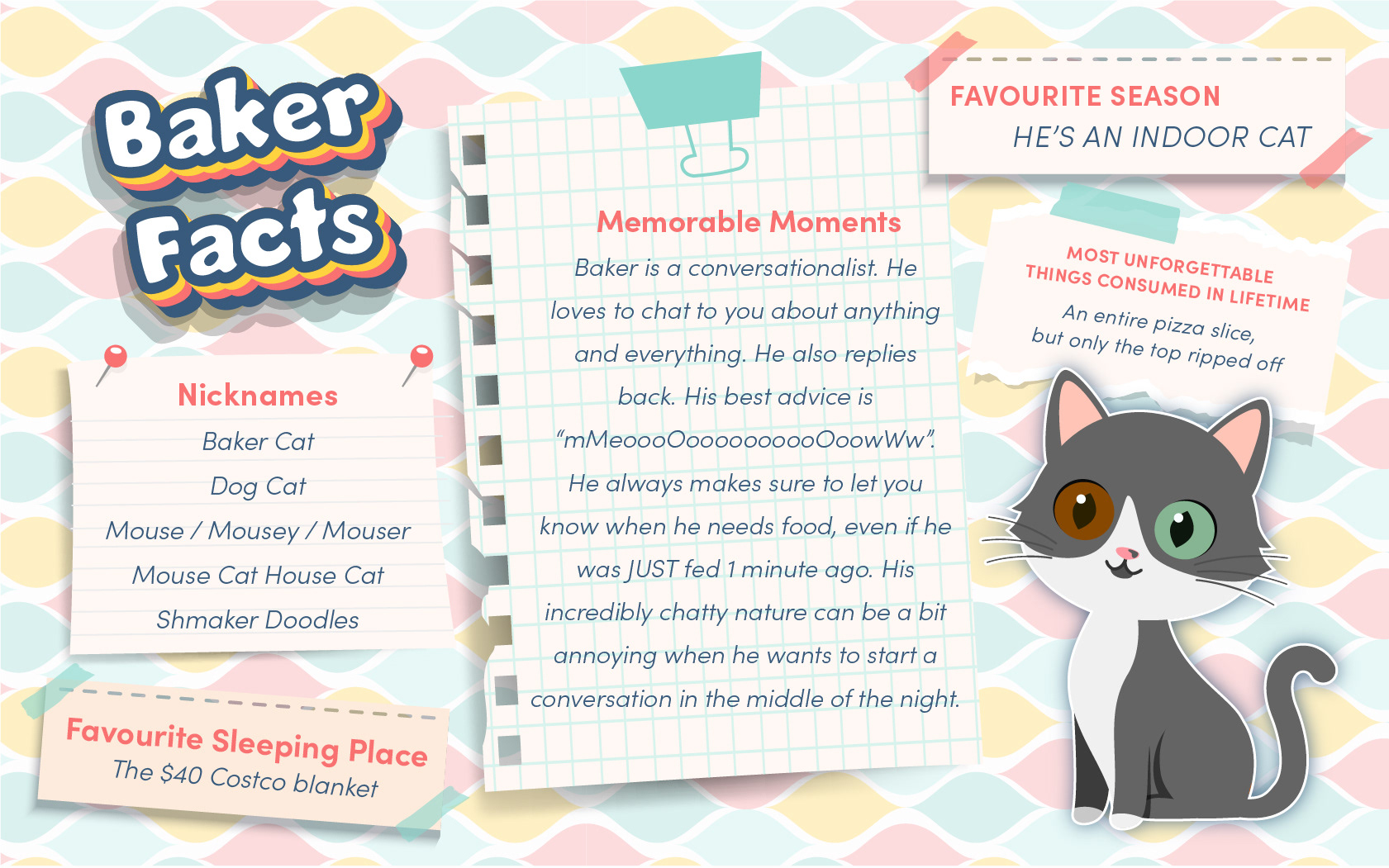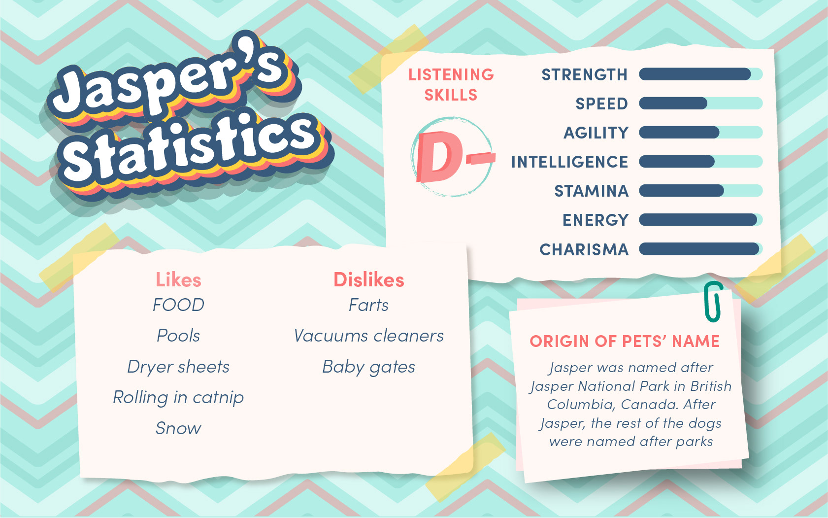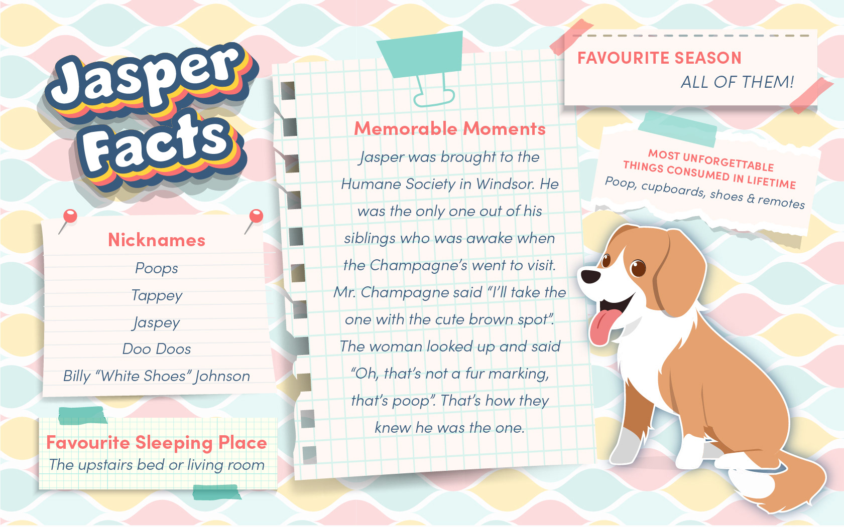 This is a fun project I did about the pets we have had in our lives. I am fortunate to have had the experience of being in Jasper, Fenway and Baker's lives. Wrigley currently lives with my parents.